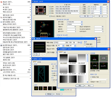 중심선/기초/기둥/벽/슬래브/천정/문/계단/주차장/엘리베이터 등 건축 객체들을 쉽게 작성할 수 있는 기능을 제공하고 면적/일람표/구적표/그라데이션/기호/부호/표식 등 건축 설계에 필요한 다양한 그리기 기능을 제공한다.